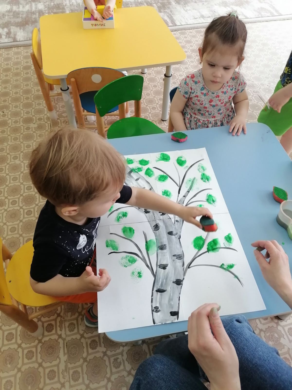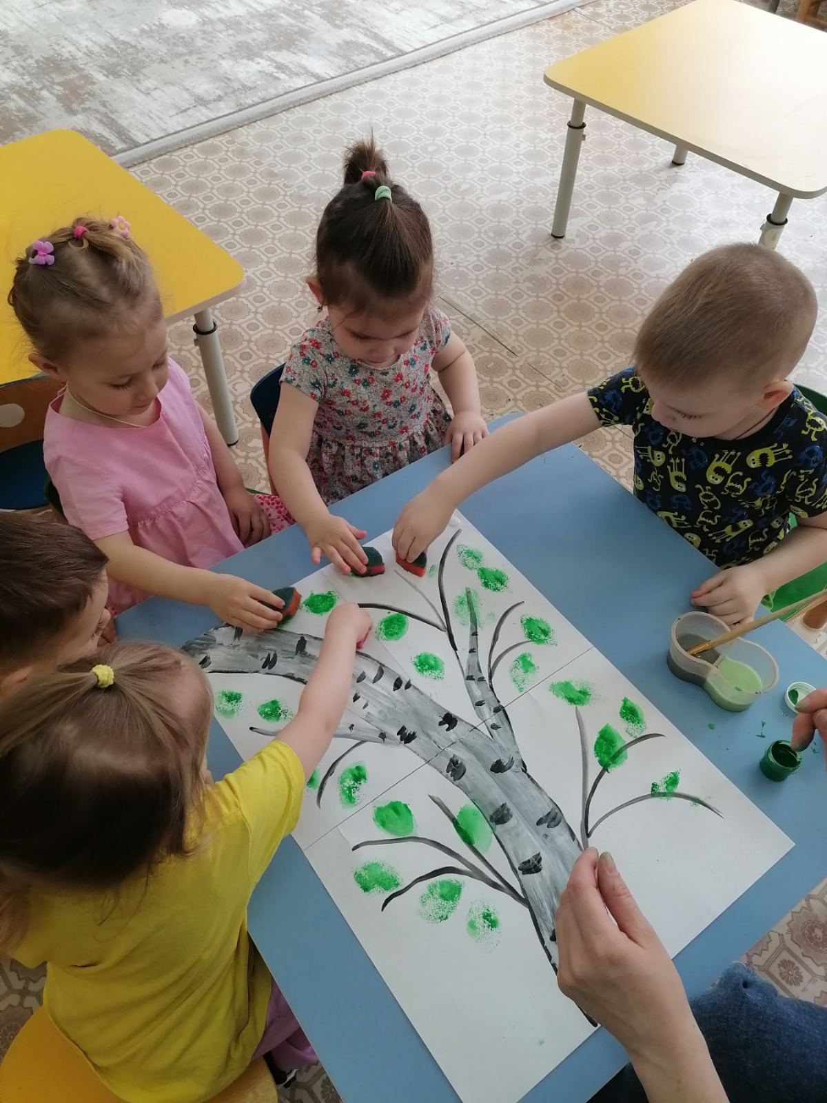 11 апреля на Руси отмечался праздник День берёзки. Малыши вместе с воспитателем нарисовали красавицу - берёзку.