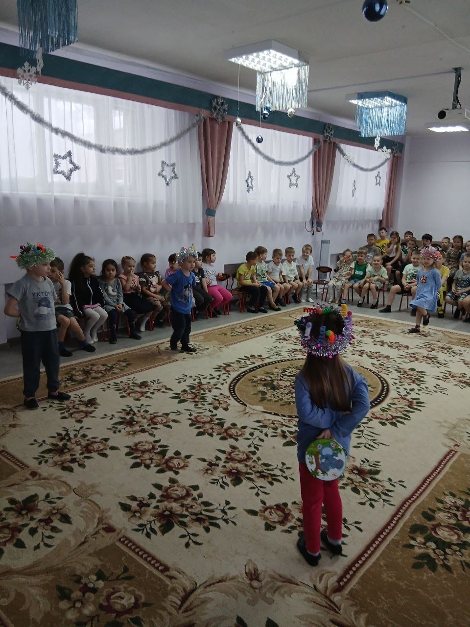Вспомнили любимые елочкой песни, игры, новогодние превращения и стихи. А в конце Елочка устроила сюрприз. Пообещала будущим первоклассникам исполнить их желание, если они повесят конфетку на веточку,а остальных ребят угостила конфетками дружбы.