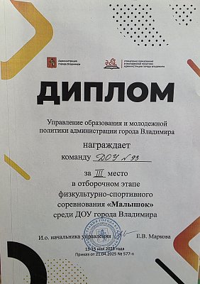 3 место в отборочном этапе физкультурно-спортивного соревнования "Малышок" среди ДОУ г.Владимира